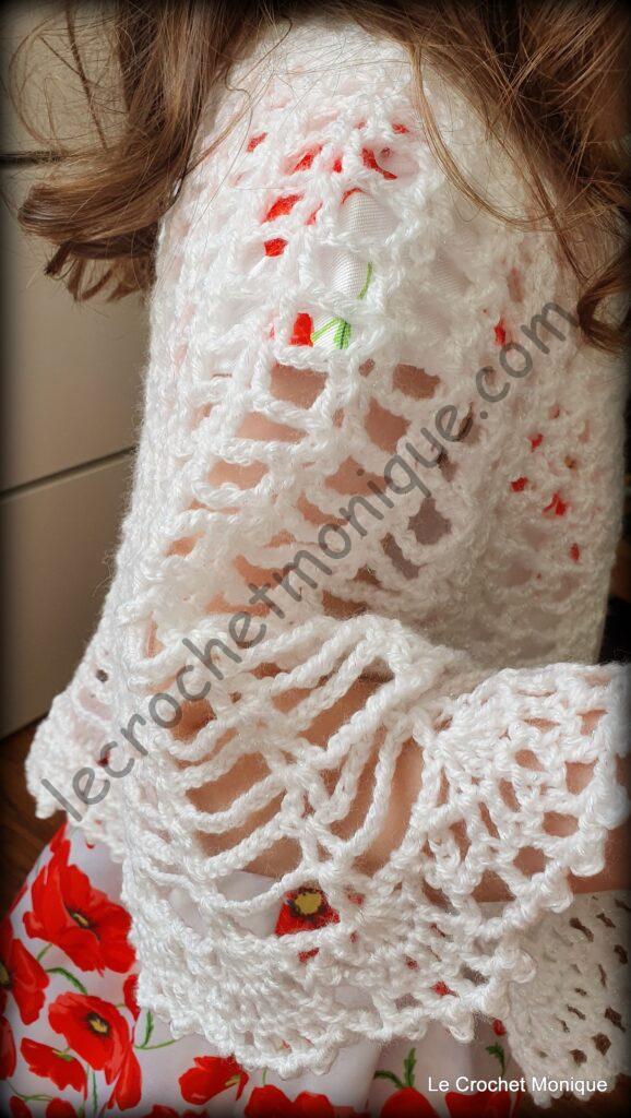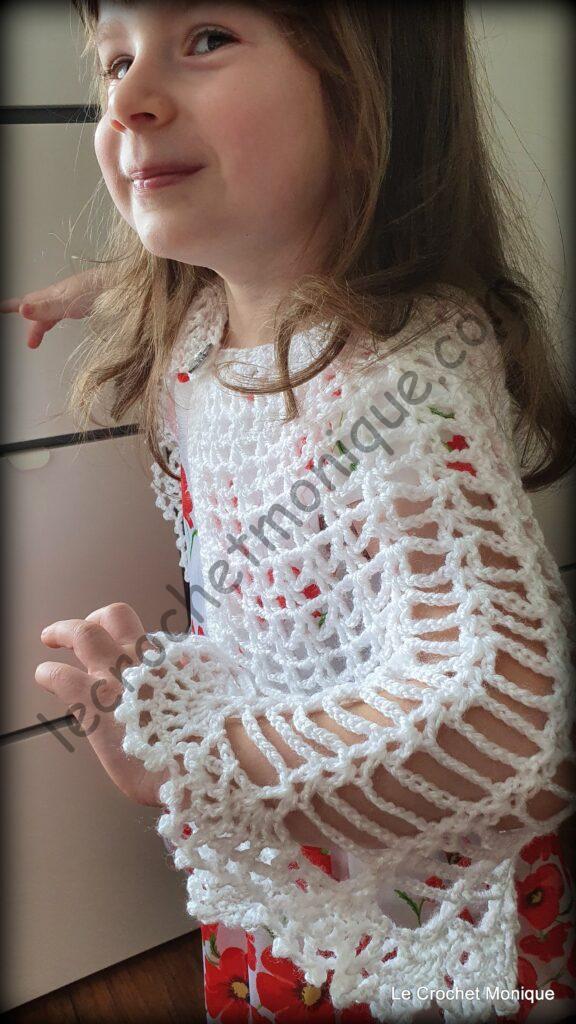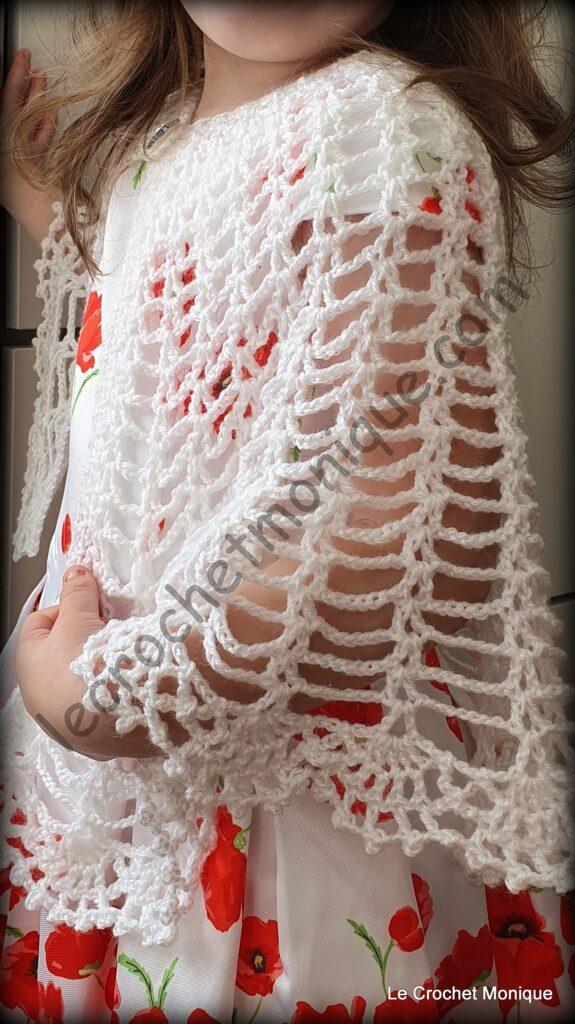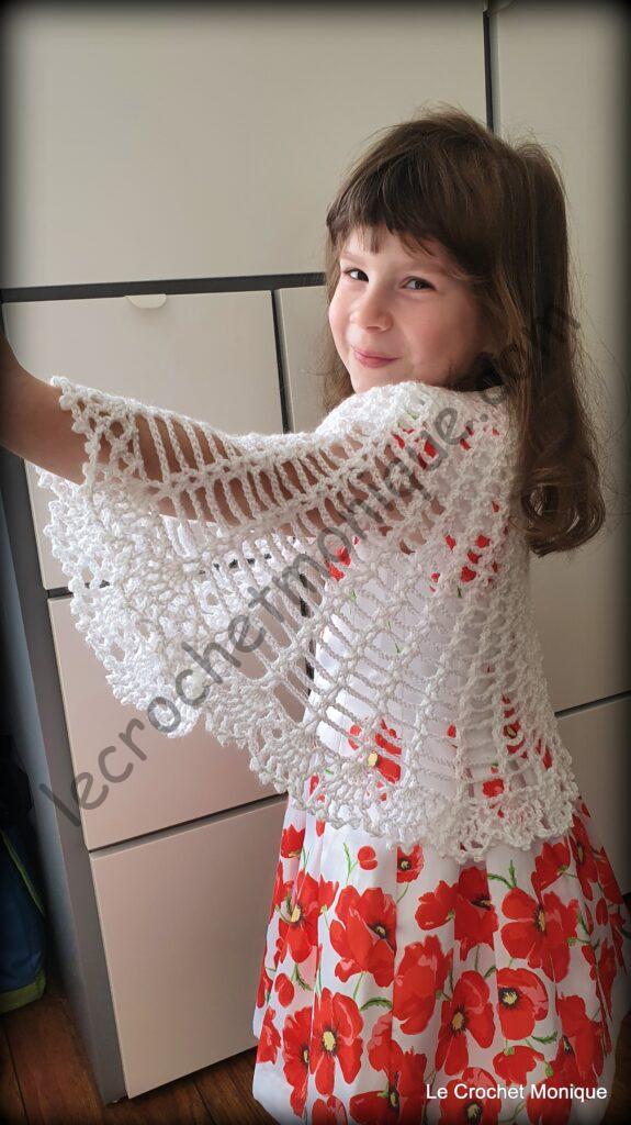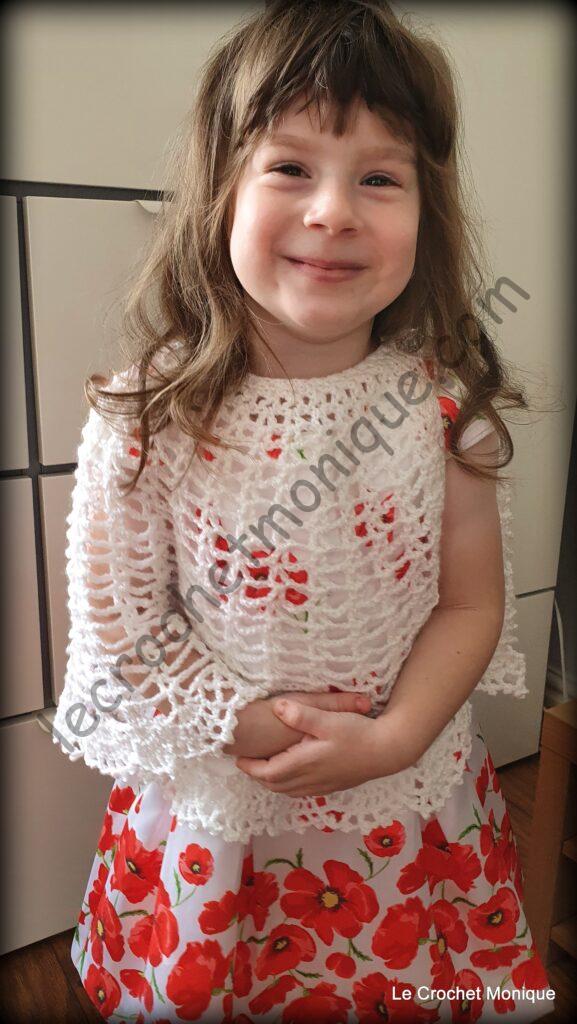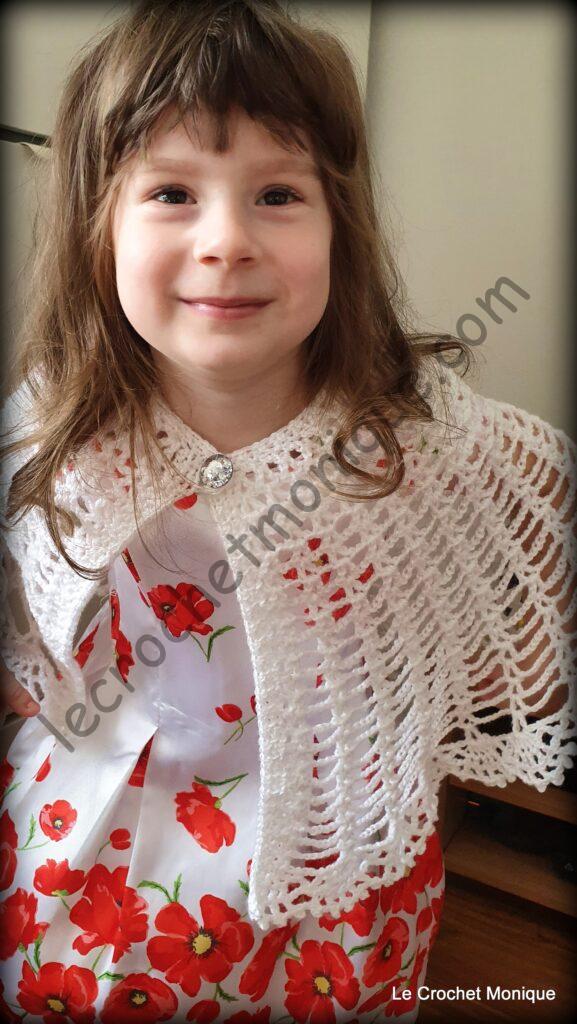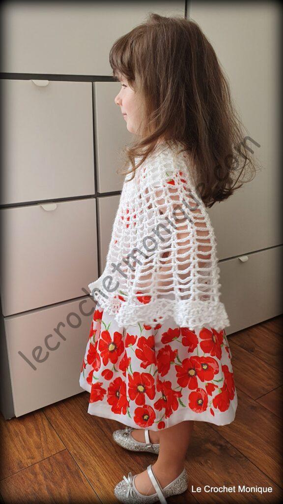 Je háčkovaná jednoduchým dierovaným vzorom a veľkoleposť jej dodáva krajkové lemovanie. Verím, že každá malá parádnica sa tomuto módnemu kúsku poteší a bude sa cítiť ako princezná.