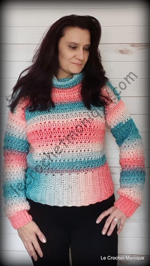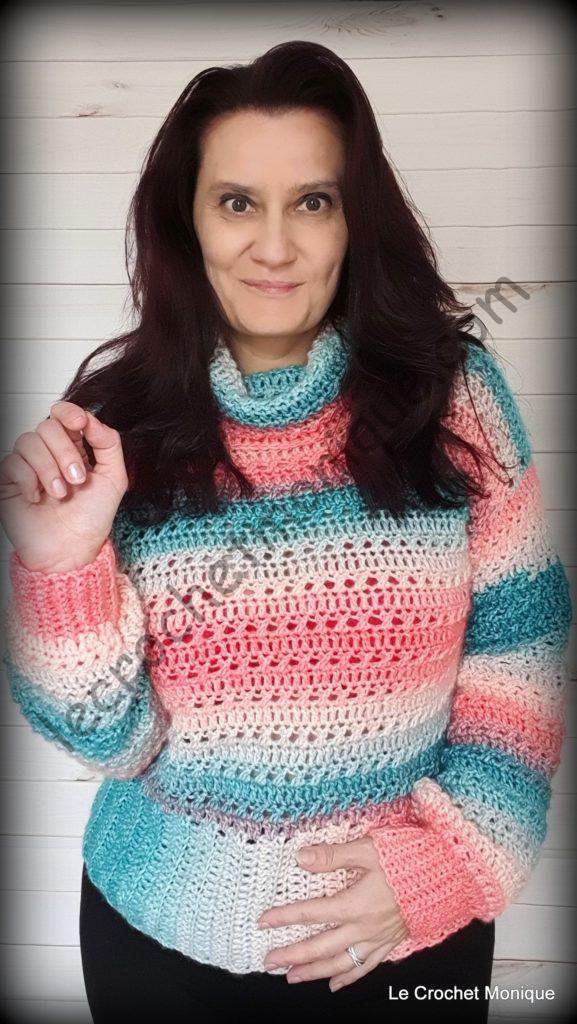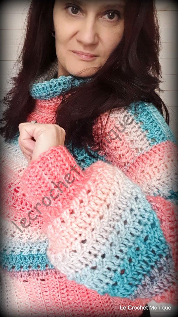 Ako som spomenula nie všetci máme tabuľkové veľkosti, upravte si počty podľa potreby. Taktiež si môžete zvoliť vlastnú dĺžku pulóvra, či rukáva. Ak nechcete rolák, len si výstrih obháčkujte krátkymi stĺpikmi.