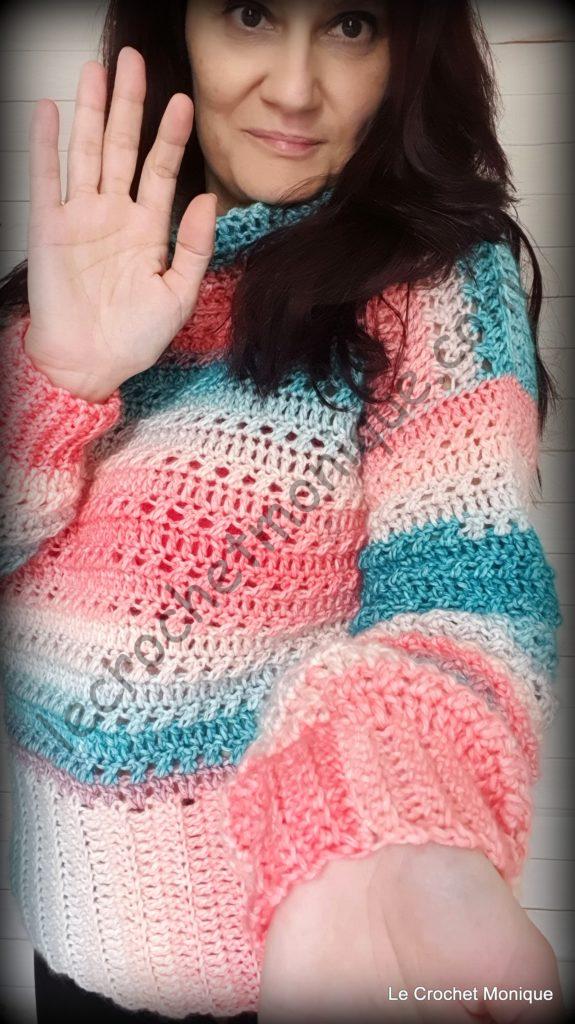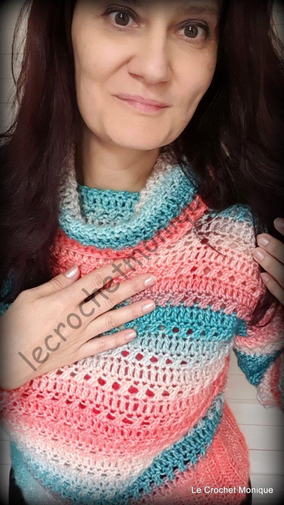 Vždy sa poteším ak sa mi so svojimi prácami pochválite prostredníctvom sociálnych sietí. Nezabudnite ma označiť #lecrochetmonique, ak budete svoje práce zdieľať a taktiež pridajte odkaz aj na video – návod. Teším sa na vaše úžasné kúsky tohto jednoduchého Háčkovaného pulóvra Nadia. ☺