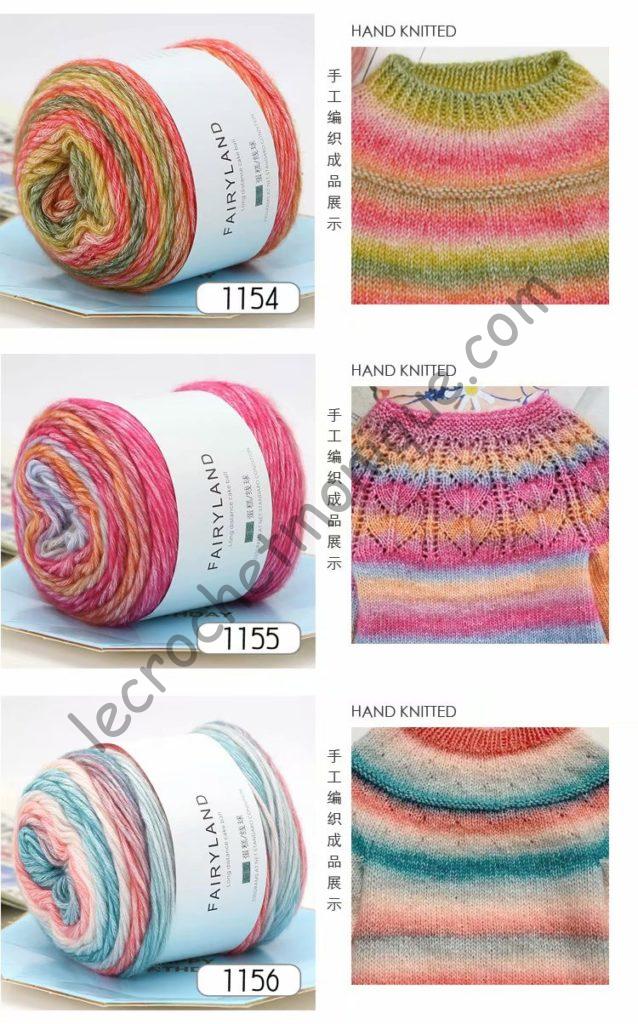 Priadza: Fairyland – Hrúbka DK/3 light – Zloženie 60% bavlna, 30% akryl, 10% vlna, 100g/245m
