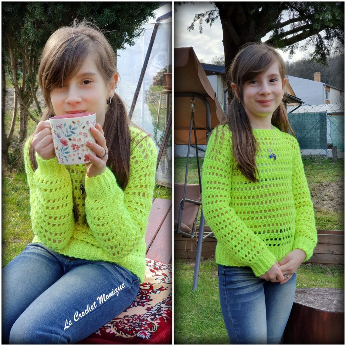 Ahojte v čarovnom svete háčkovania Le Crochet Monique! Dnes vám predstavujem náš nový projekt – Háčkovaný pulóvrik Elin, ktorý som vytvorila špeciálne pre svoju dcéru. Tento pulóvrik vznikol z čistého nadšenia a potreby mať kúsok, ktorý bude nielen pohodlný, ale aj veselý a moderný, vhodný na bežné nosenie do školy, na prechádzky či stretnutia s kamarátmi. Keď moja dcéra prišla za mnou a povedala: „Mami, chcem niečo farebné a veselé, čo sa dá nosiť každý deň,“ vedela som, že musíme spolu vytvoriť niečo výnimočné. Vybrala si jemnú, ale hravú farbu, ktorá sa jej páčila, a tak sa zrodil náš pulóvrik Elin.
